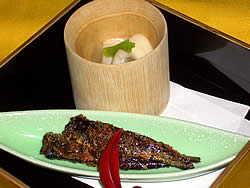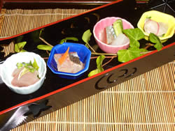 毎月変わる献立は特に女性客に人気で、地元の方はもちろん遠方からこられる方もいるほどです。新鮮な素材にこだわり、旬のものを大切に吟味、工夫して、こだわりの器で提供します。萩焼の器との組み合わせも見所です。季節とともに移り変わる花膳の創作料理を是非一度ご賞味ください。