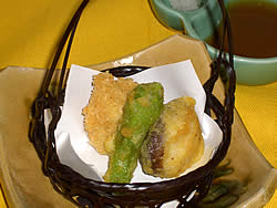 小海老かき揚げと椎茸の二身揚げ