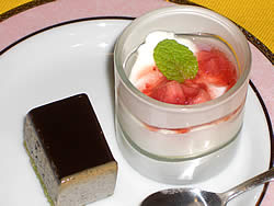 苺の杏仁豆腐とケーキ