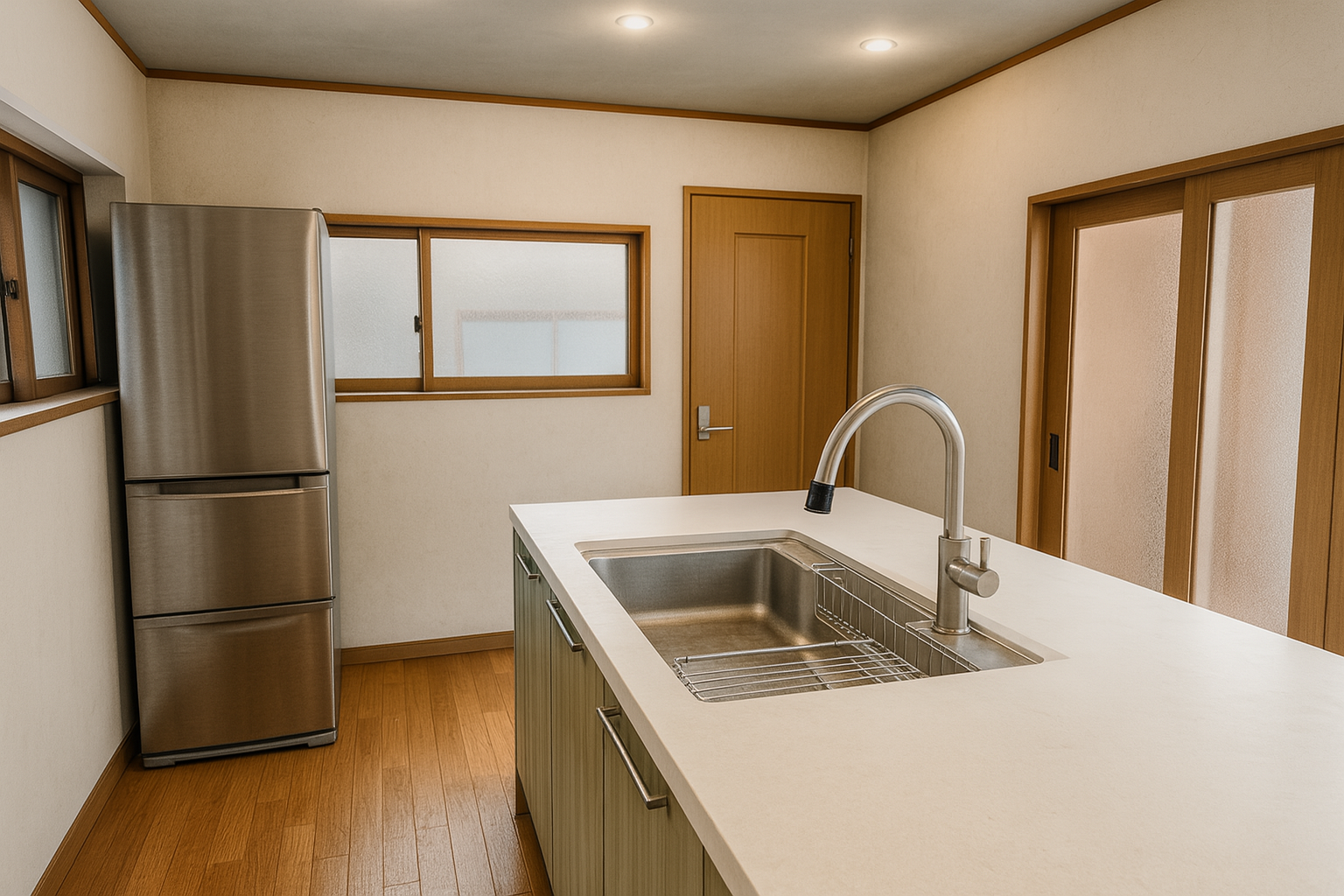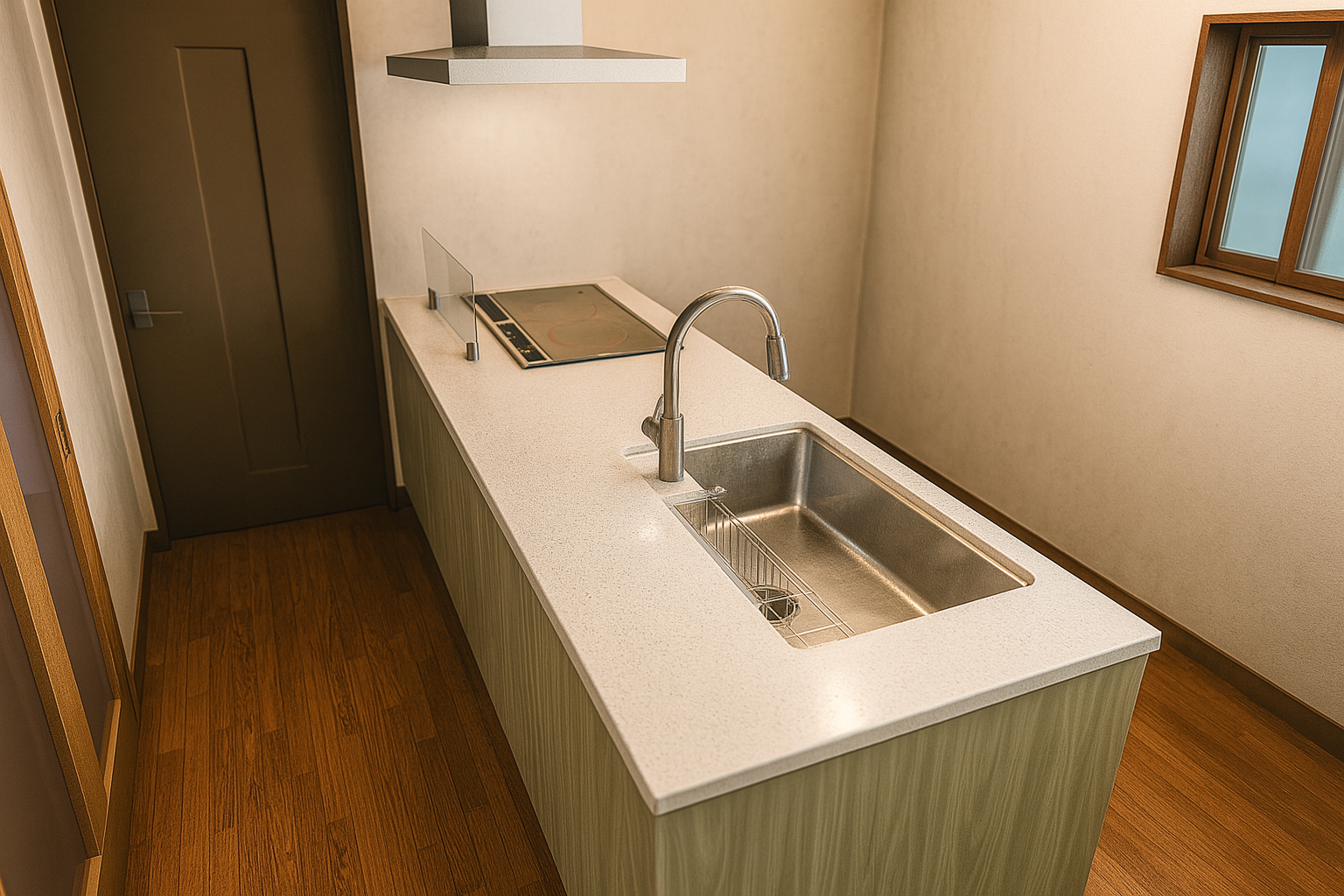 IHクッキングヒーターはグリルを設けないスタイリッシュな三菱製ユーロスタイルIHです。