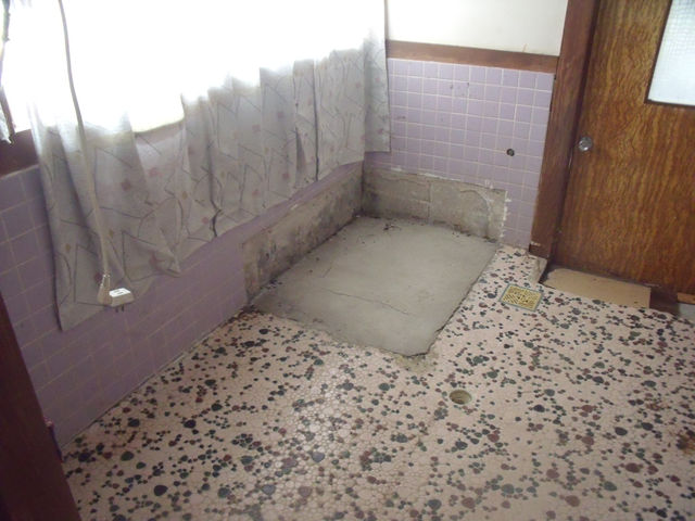 そして既存の浴室の出入り口は脱衣室からの出入り口と外部から直接の出入り口が2ヶ所あります。外部からの出入り口は農作業で汚れた後に家の中を通らずに直接出入りする為どうしても必要との事でした。