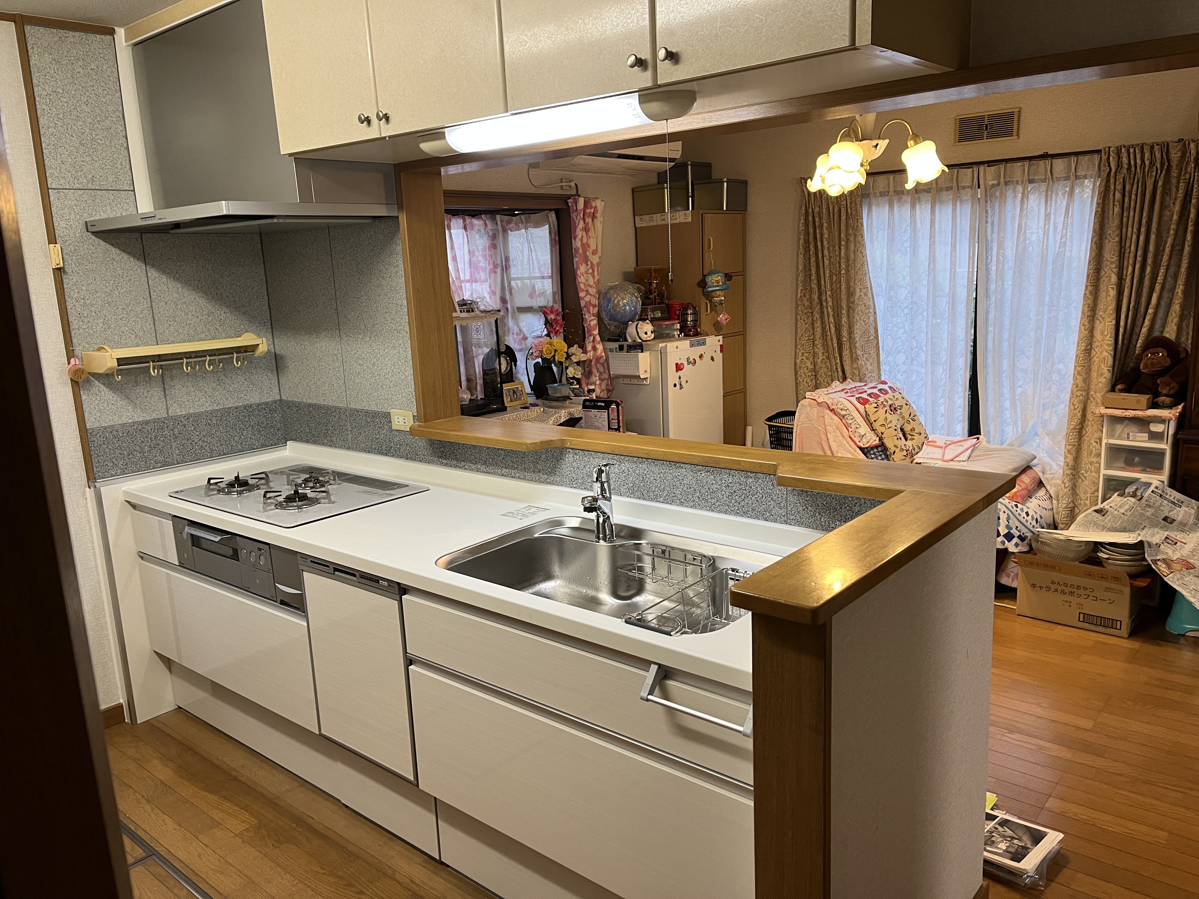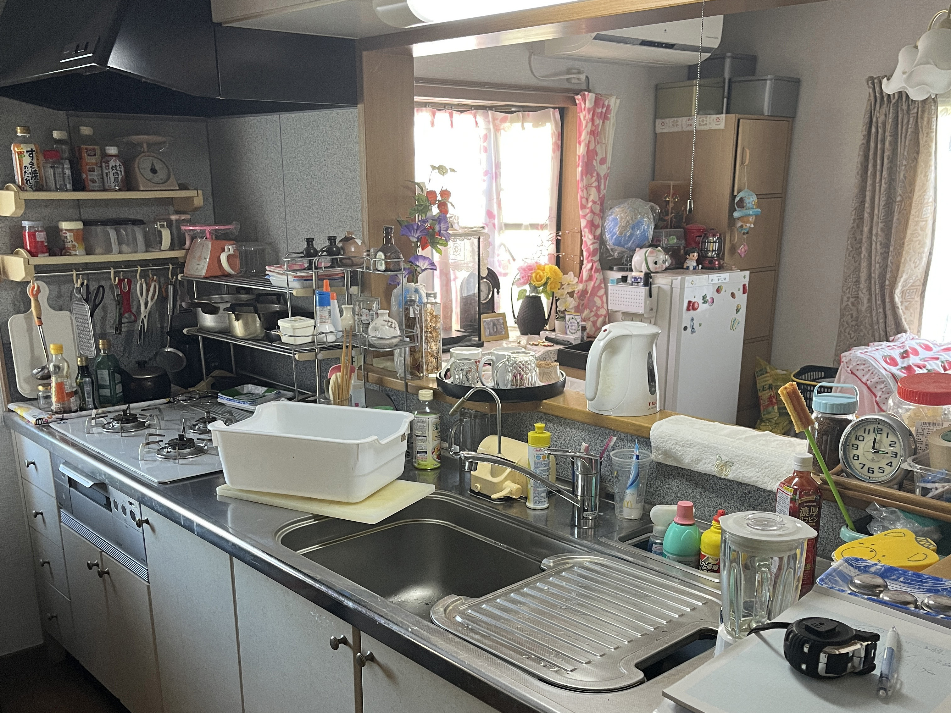 既設のキッチンは小物がカウンターの上にあふれかえっていました。